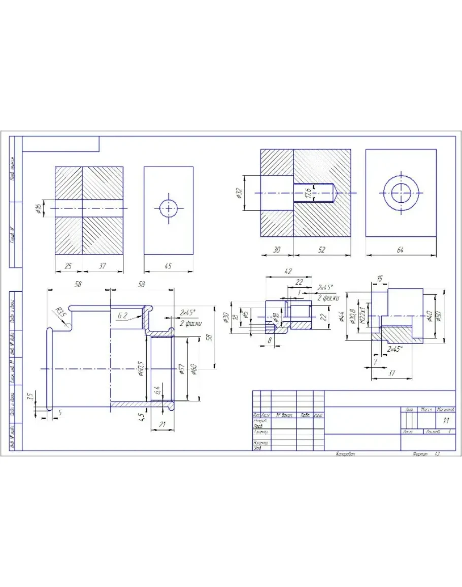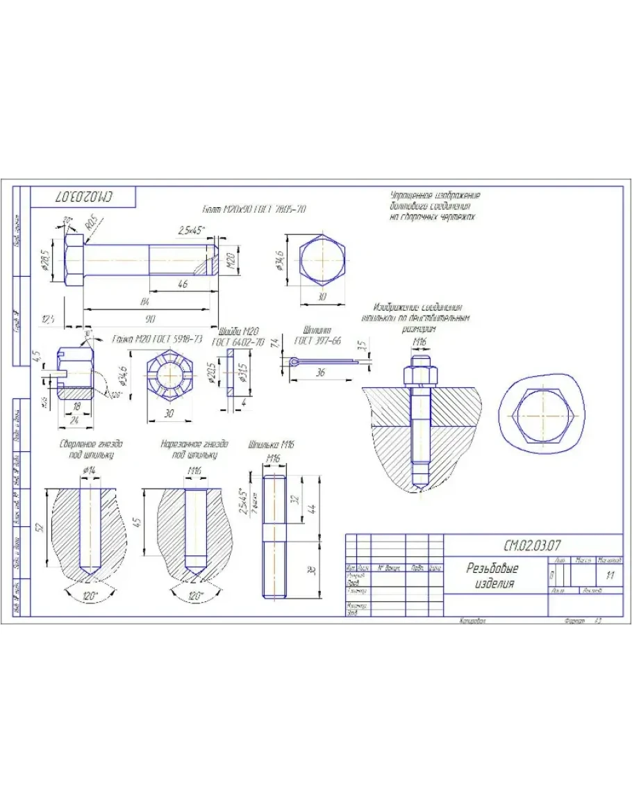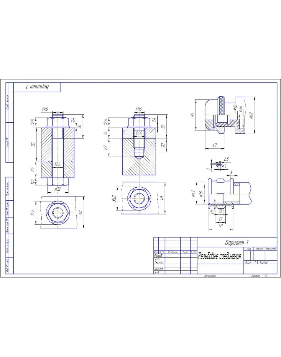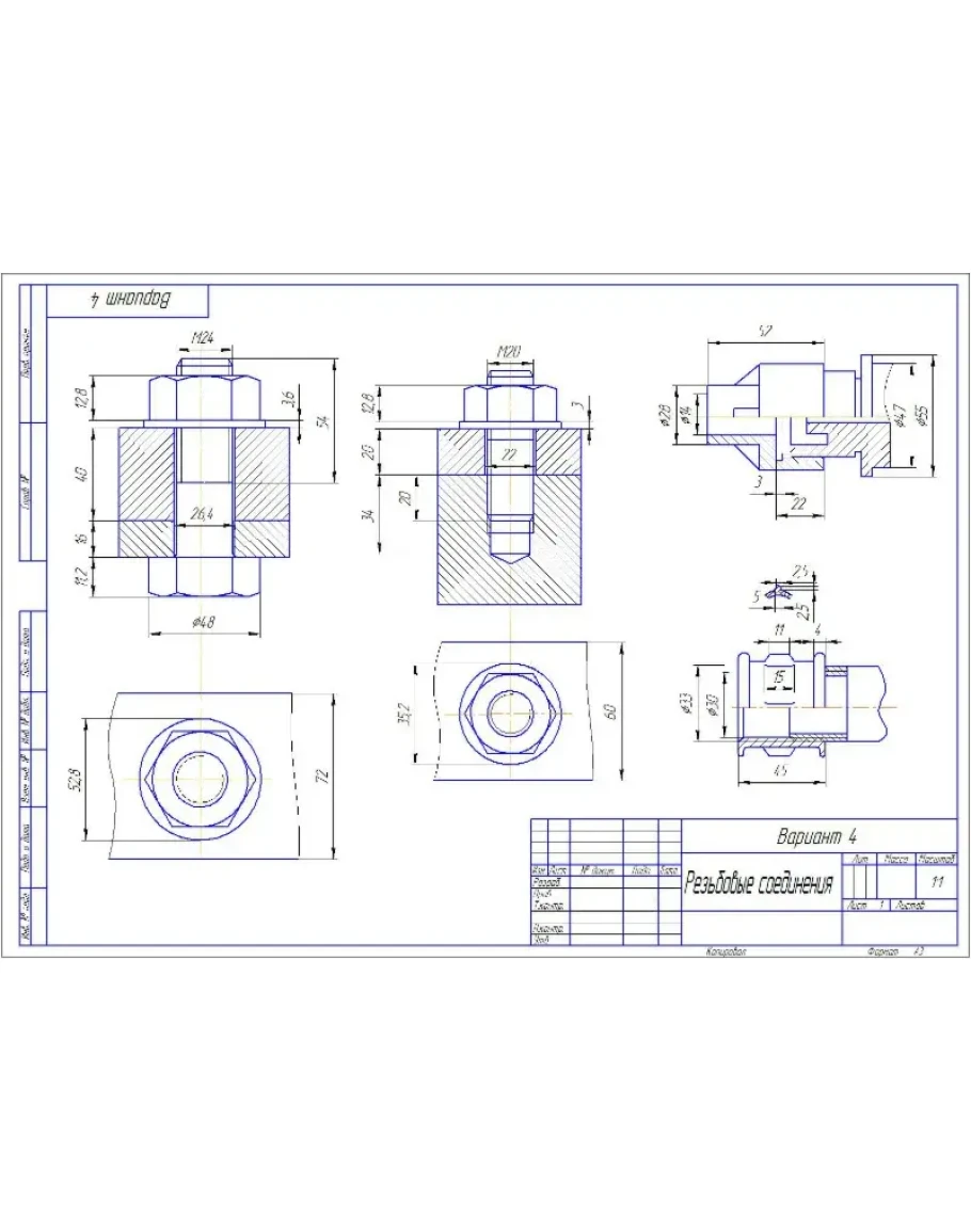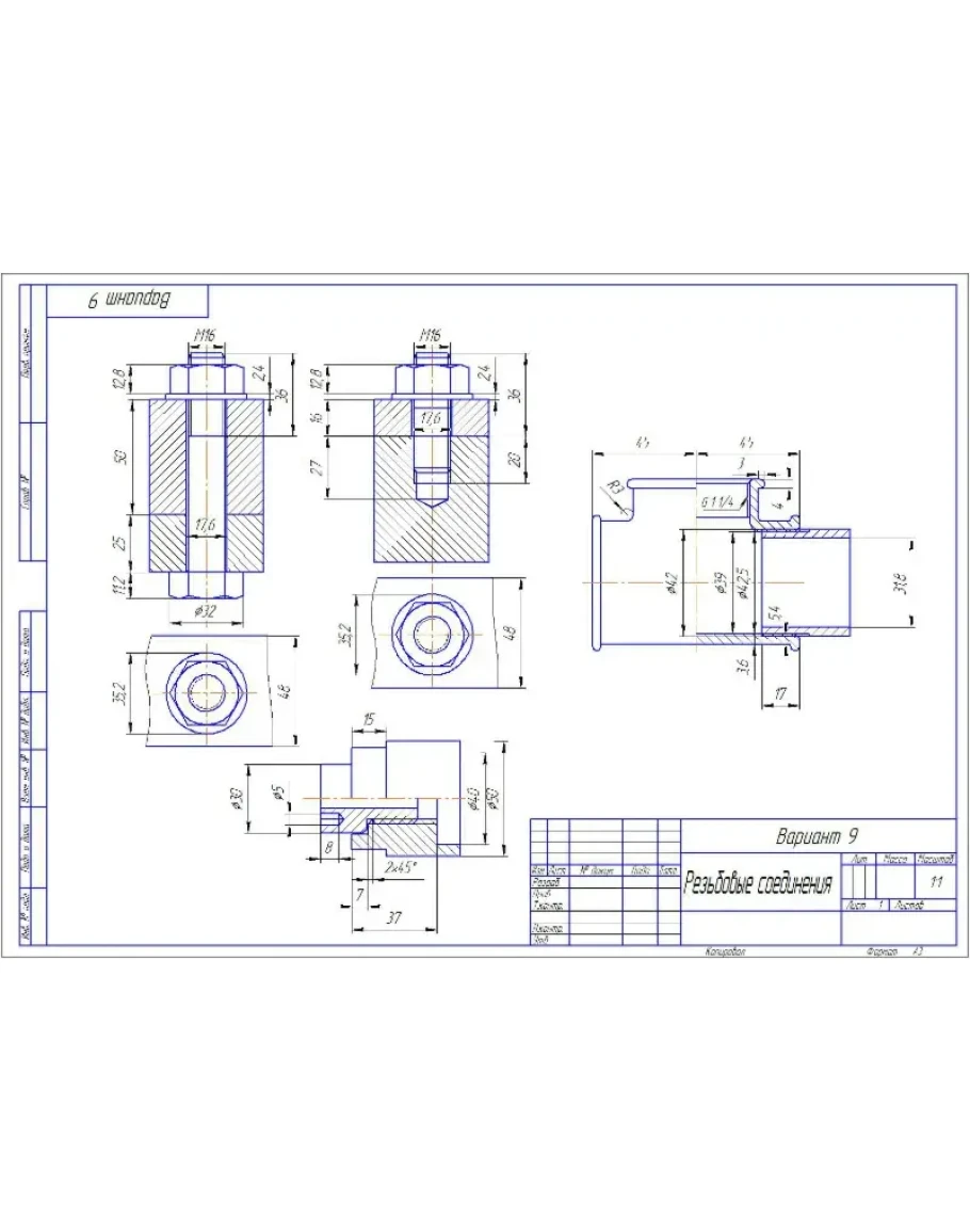 Чертежи по инженерной графике. Резьбовые соединения. 6 вариантов.