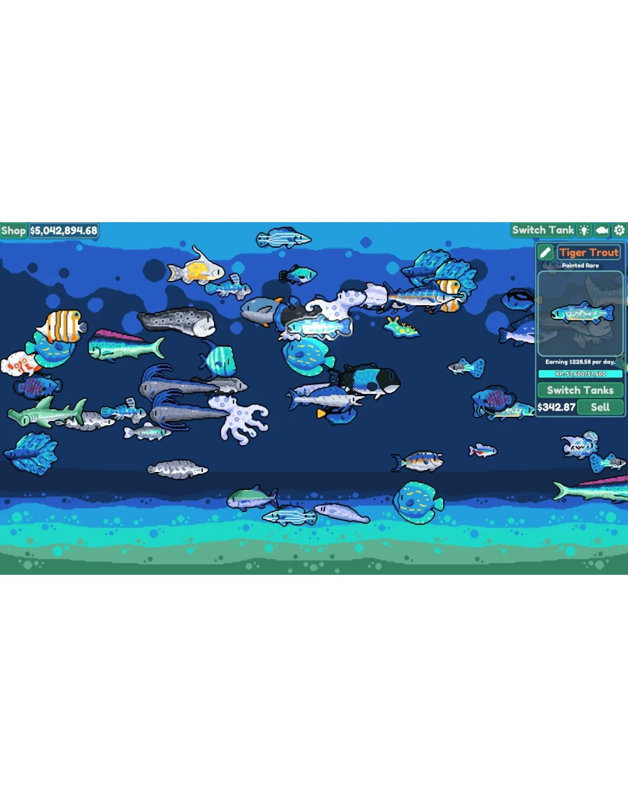 Chillquarium — уютная расслабляющая инди-игра. Покупайте рыб, выращивайте их в реальном времени, а затем продавайте, чтобы заработать! Улучшайте свой аквариум: пройдите путь от простого начального аквариума до аквариума мечты с вашей коллекцией редких экзотических рыб с крайне редким окрасом!