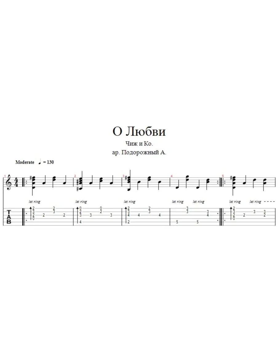 Предлагаю вашему вниманию ноты и табы песни группы Чиж и Ко "О любви". Песня выполнена в тональности "D" в формате Guitar Pro 5.