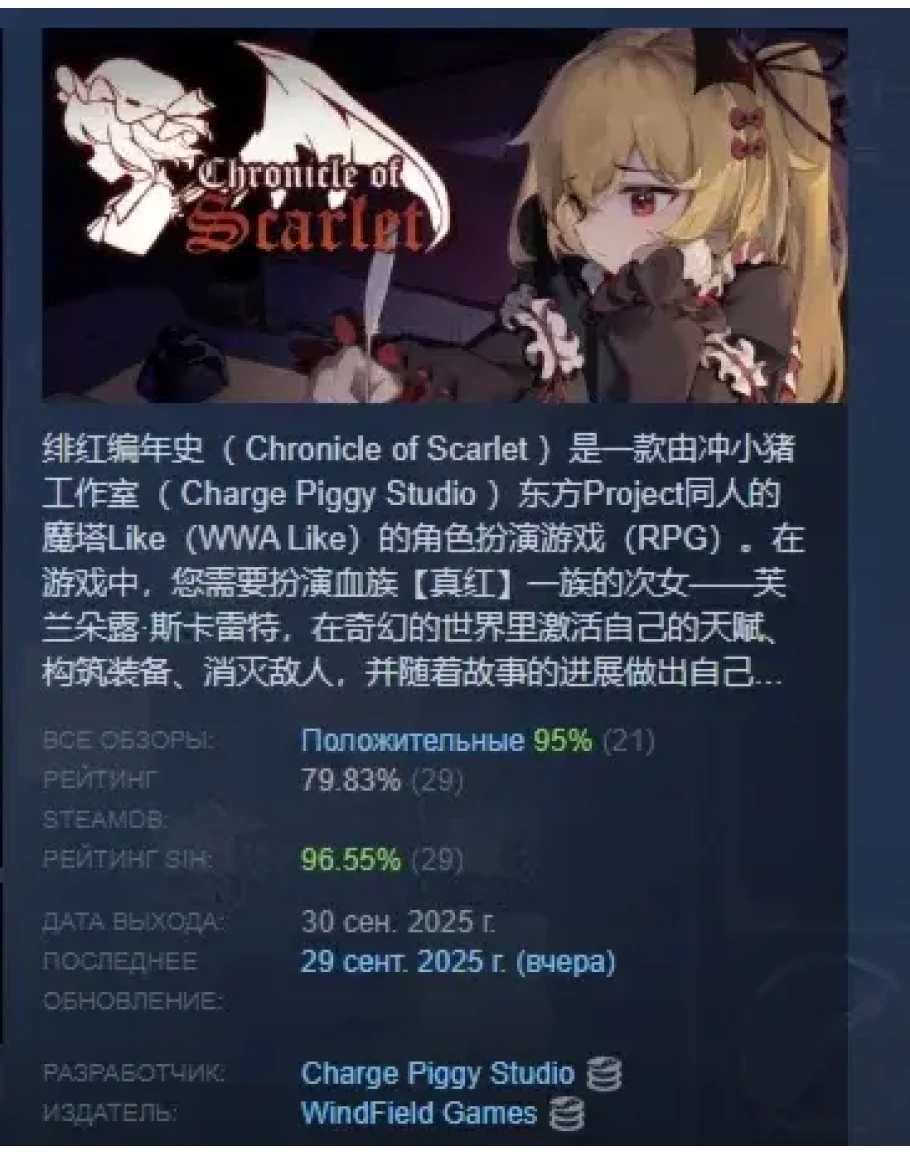 Chronicle of Scarlet АВТОДОСТАВКА STEAM РОССИЯ