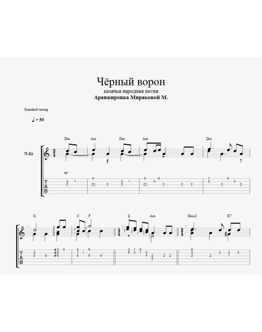 Авторская аранжировка для шестиструнной гитары от Марины Мираковой на казачью народную песню "Чёрный ворон".