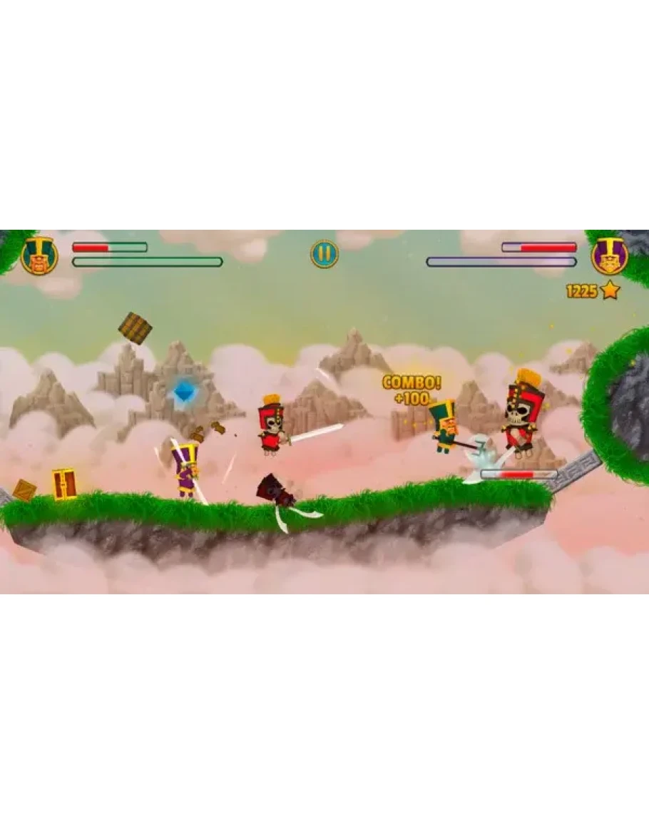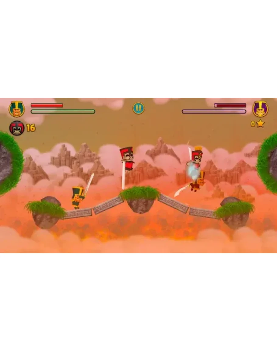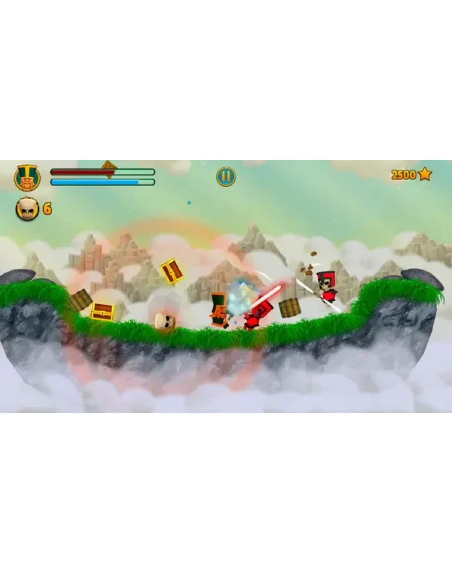 Swing and slash your way to victory on the floating arenas of Cloud Knights! Pick your weapon and use it to hack at the enemies and move across the game world. The physics-based controls allow the characters to move and fight by simply swinging their weapon. All game modes can be played by up to two players locally. Save fellow knights, defeat the invading Undead Legions and crush your mightiest opponents in boss fights!