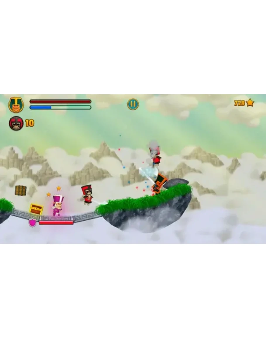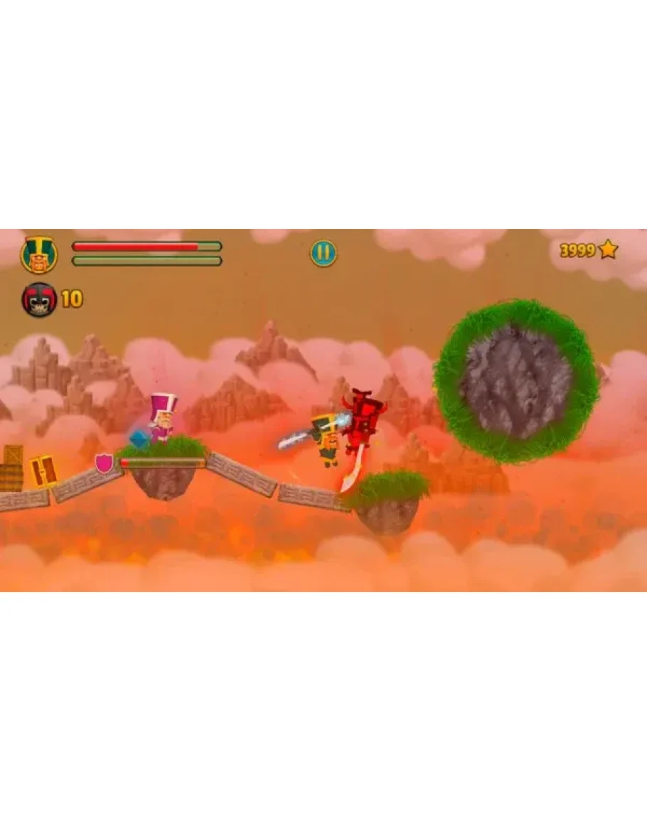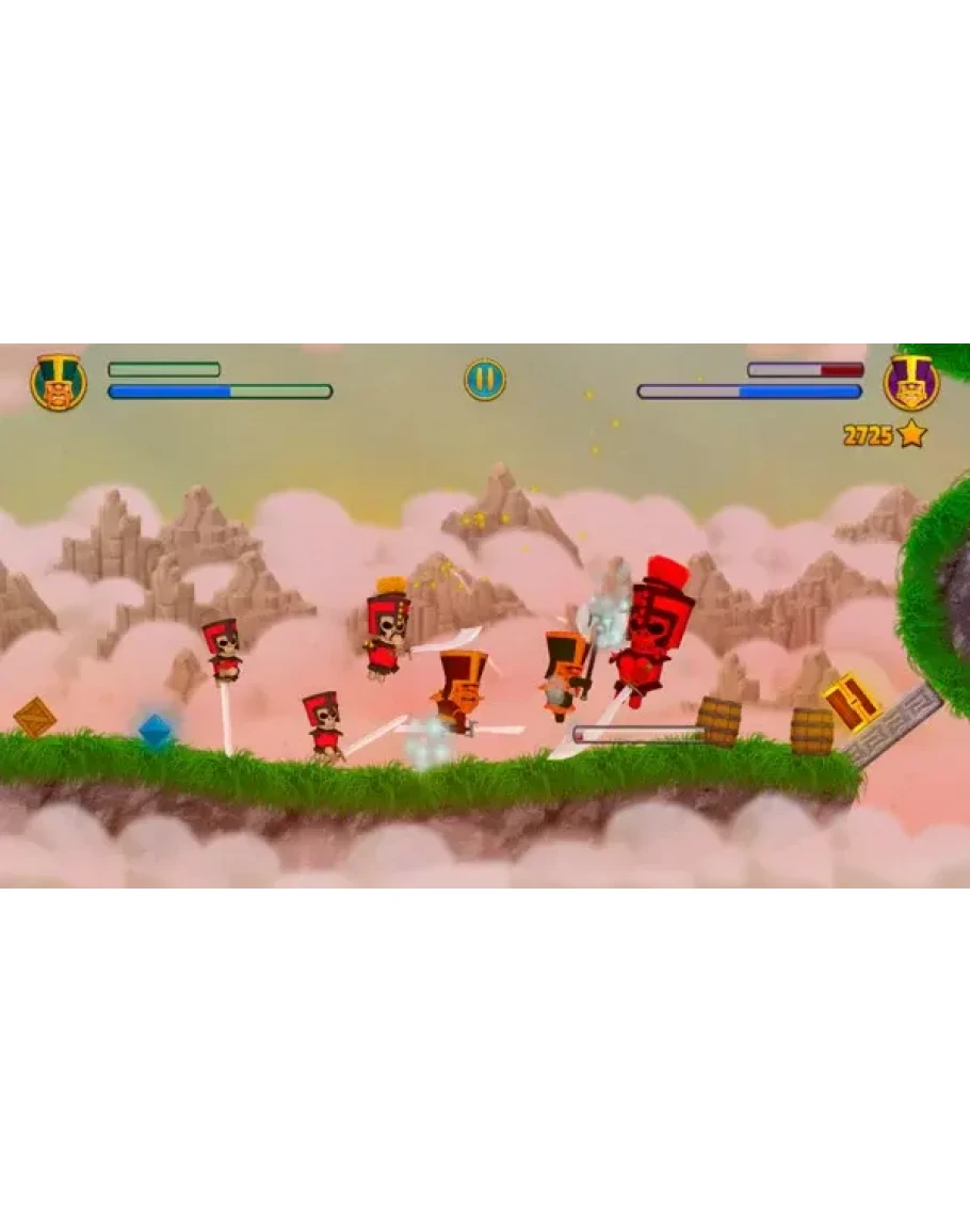 Swing and slash your way to victory on the floating arenas of Cloud Knights! Pick your weapon and use it to hack at the enemies and move across the game world. The physics-based controls allow the characters to move and fight by simply swinging their weapon. All game modes can be played by up to two players locally. Save fellow knights, defeat the invading Undead Legions and crush your mightiest opponents in boss fights!