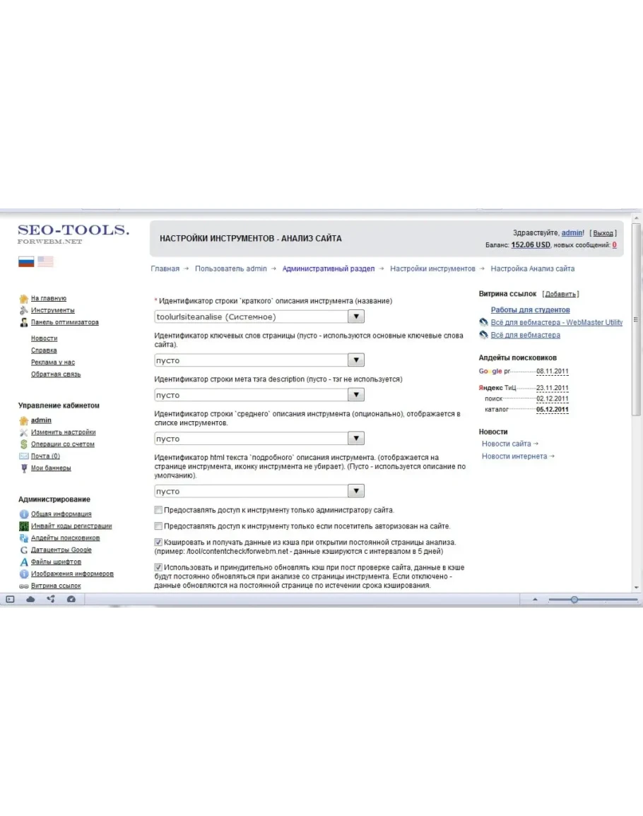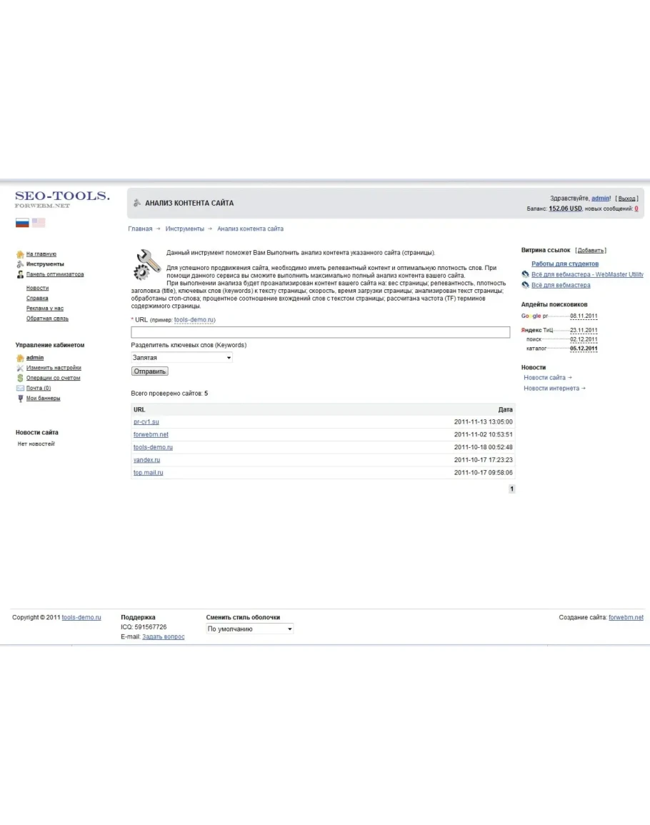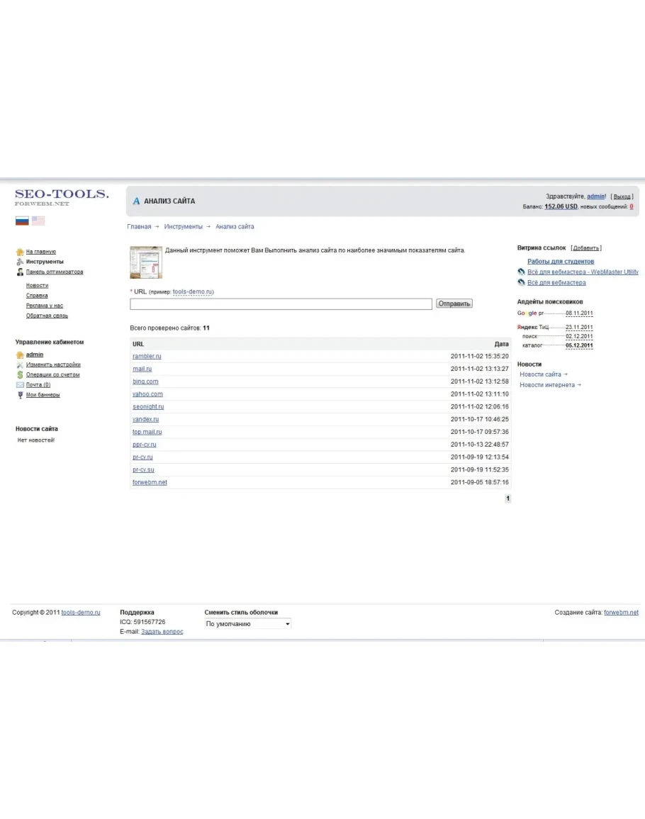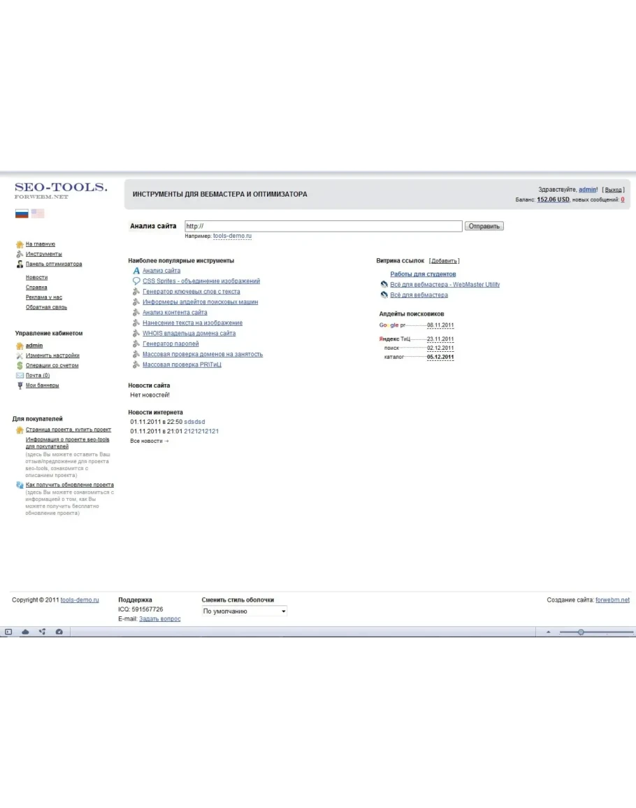 Проект с открытым исходным кодом для создания сайта SEO инструментов. 48+ инструментов для вебмастера и оптимизатора. Панель оптимизатора. Графическое отображение данных. Анализ и мониторинг сайтов. Позволяет легко и быстро создать персональный сайт или раздел вашего сайта для вебмастеров и оптимизаторов.