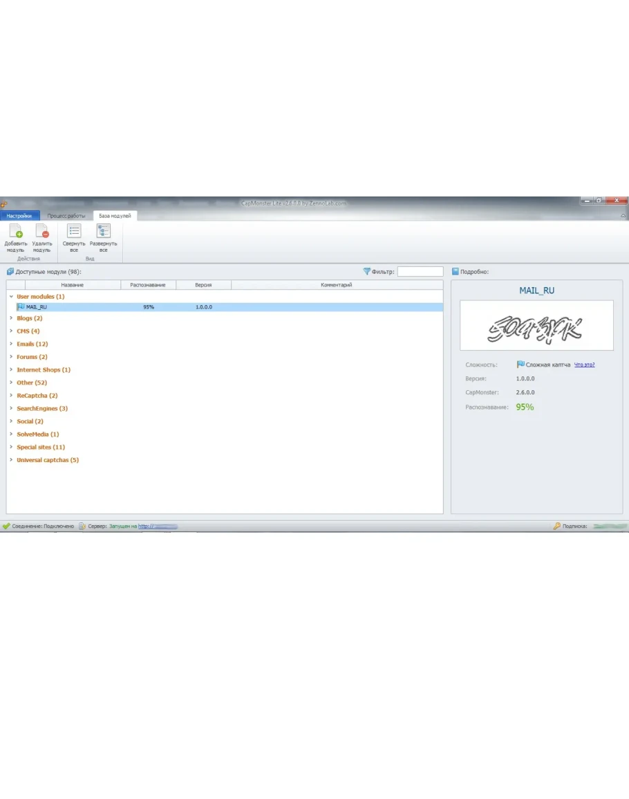 Многократное тестирование показало РЕАЛЬНУЮ эффективность модуля - 90 % ( в среднем модуль распознает 90 из 100 капч).