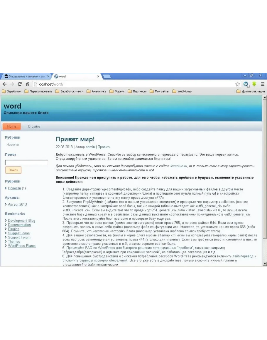 Шаблон WordPress голубой расцветки для вашего сайта.