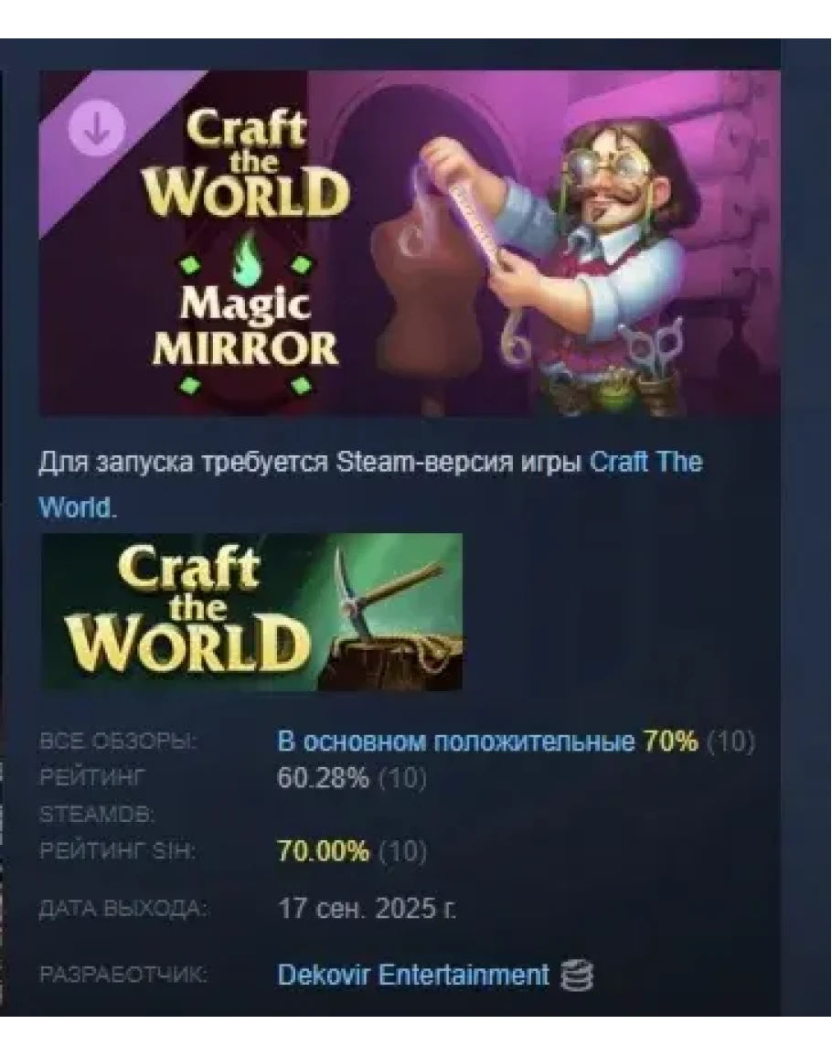 https://store.steampowered.com/app/4010190/Craft_The_World__Magic_Mirror/