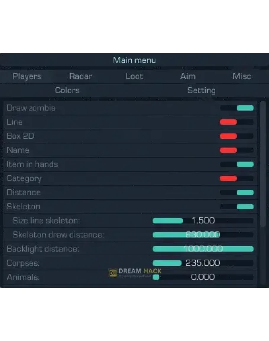 Надёжный приватный чит от годами проверенного разработчика Crooked Arms. В арсенале программиста множество качественных проектов к популярным играм. Сотни пользователей по всему миру регулярно покупают и продлевают свои ключи активации. Программы своевременно замораживают на обновления в случаях необходимости и в кротчайший срок возвращают в строй. Создать чит для DayZ не составило труда. В его разработке использовали современный обход античита, который прекрасно зарекомендовал себя в других играх. Оставалось только протестировать, оптимизировать функционал, с чем игроки прекрасно справились. Вы получите готовый продукт за которым следят, актуализируют и дорабатывают. Множество функций, которые сможете подстроить под свой стиль игры. Отметим, что чит не видно на скриншотах, видео и демонстрациях экрана. Данная возможность обеспечивает дополнительную защиту вашего аккаунта от бана.