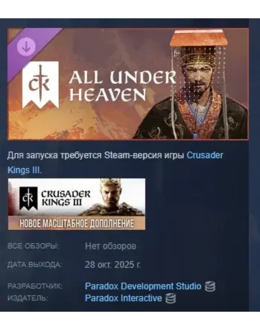 Crusader Kings III All Under Heaven АВТОДО STEAM РОССИЯ