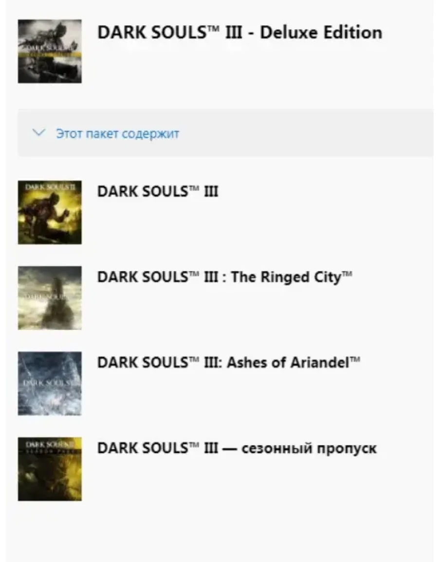 Deluxe-издание DARK SOULS™ III включает полную версию игры, и сезонный пропуск, дающий доступ к дополнительным картам, боссам, противникам, новому оружию и броне.