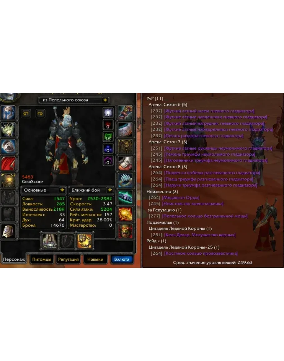 - PvP 5483гс, 1/5 а7, 4/5 а6, информация о вещах на скриншотах
