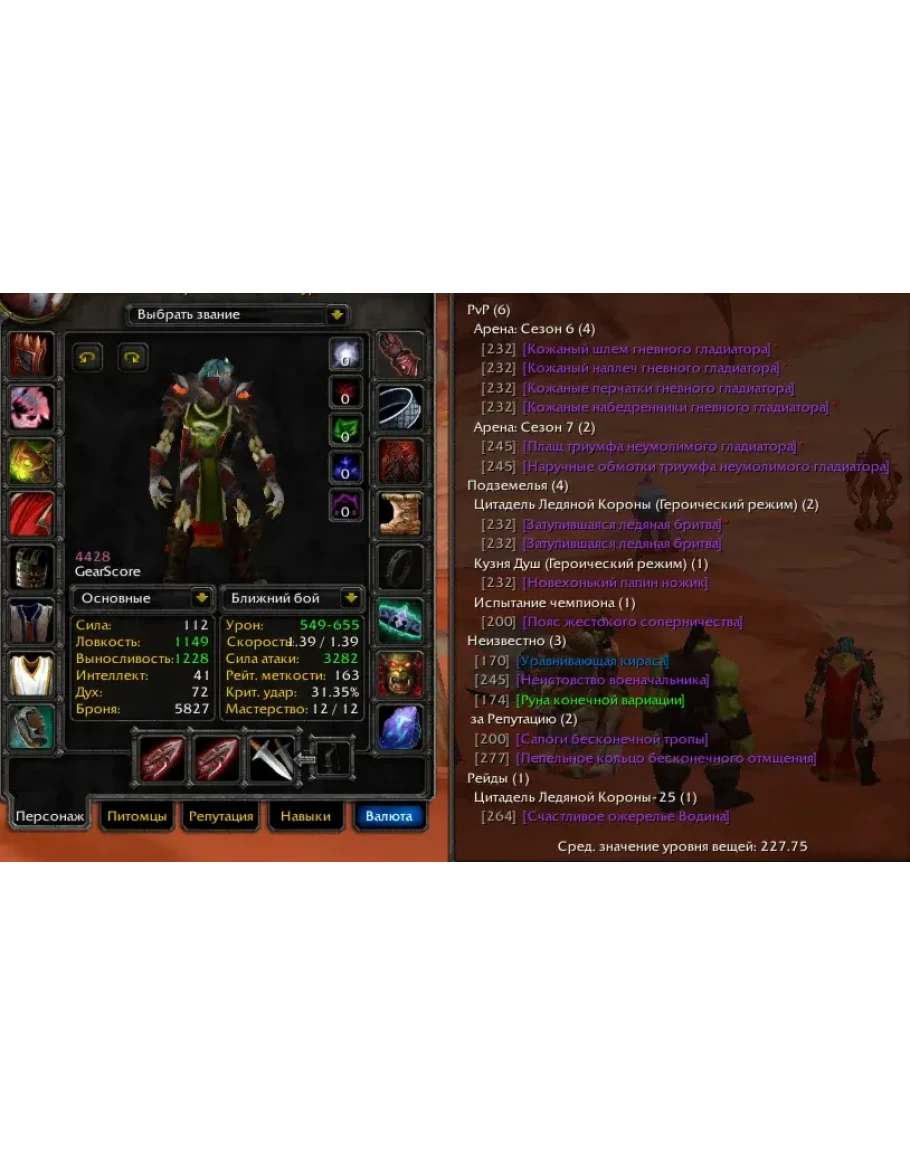 - PvP 4428гс, 4/5 а6, информация о вещах на скриншотах