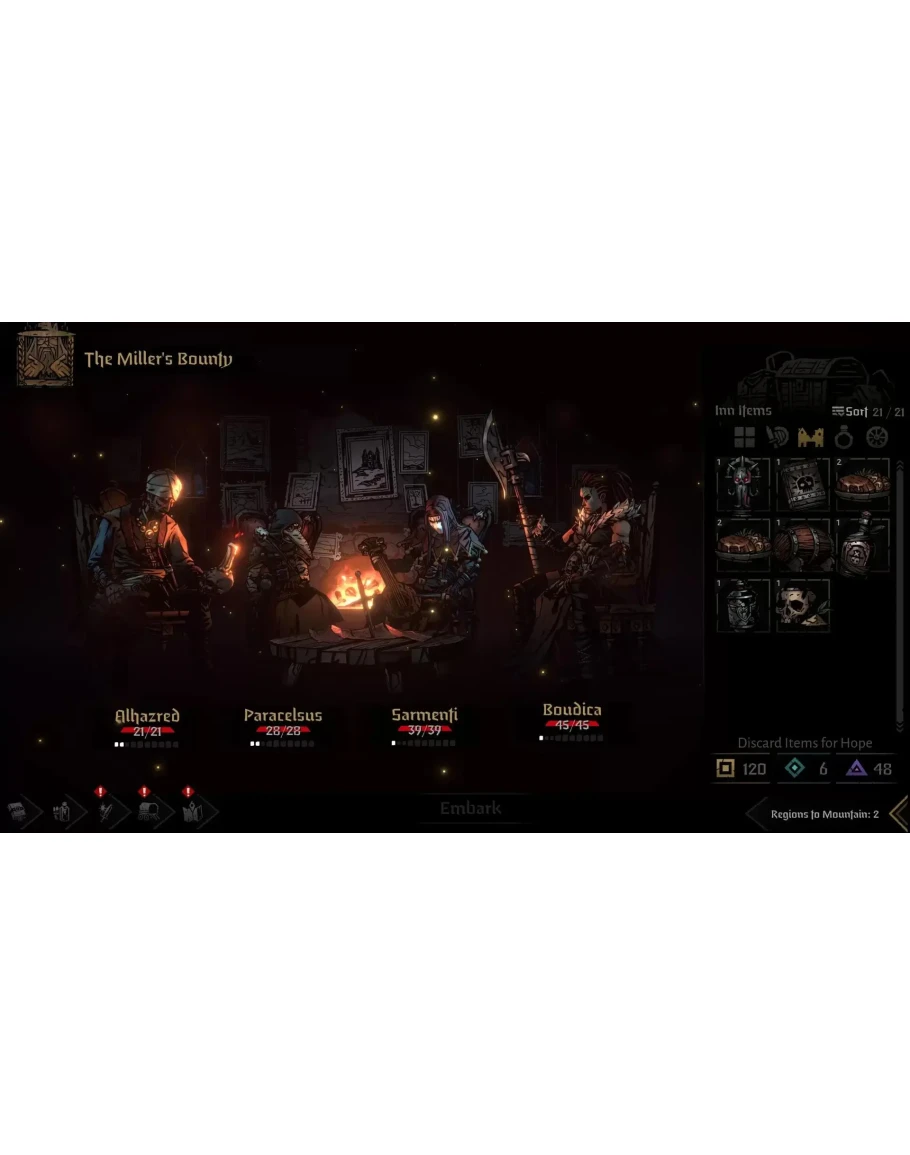 Darkest Dungeon II — это путешествие в жанре рогалик, в которое отправляются обречённые души. Создайте отряд героев, снарядите Дилижанс и идите спасать мир, освещая умирающие земли последней искрой надежды. Но помните, что главные угрозы приходят не извне… Соберите всю смелость в кулак и погрузитесь в хаос разрушающегося мира. Между тьмой и спасением — лишь четверо героев и Дилижанс. Улучшенная механика пошагового боя В новую игру возвращается новаторская боевая система из Darkest Dungeon, которую мы сделали ещё лучше, преобразив многие из её элементов: от характеристик до правил. А новая механика меток добавляет глубины, позволяя принимать более взвешенные решения. Незабываемые персонажи Узнайте и проживите трагичную историю из прошлого наших героев. Раскройте их потенциал с помощью новых навыков, путей, предметов и многого другого. Уникальная история в каждом походе Каждая экспедиция длится от 30 минут до нескольких часов. Даже при неудачной вылазке вы получите ресурсы, которые будут весьма кстати в вашем следующем путешествии. Алтарь надежды Воспользуйтесь системой улучшений и благ, которая позволит вам открыть новые стратегии для каждого следующего похода. Выберите, что понадобится вам при следующей попытке добраться до Горы. Система мнений В ходе странствия герои сближаются между собой, учась работать в команде, или же доводят друг друга до белого каления, а экспедицию — до печального конца. Снимайте стресс с героев и управляйте их отношениями, чтобы сохранить команду несмотря ни на что. Жуткие локации Весь ваш долгий путь до Горы — от пылающего Поградья до чумного Смрадья — вам придётся доказывать как собственную выдержку, так и правильность вашей тактики. Исследуйте пять отдалённых регионов, в каждом из которых вам придётся преодолевать трудности и сталкиваться с уникальными врагами. Тишь да гладь Измождённые физически и морально герои могут передохнуть в трактире, пока вы снимаете с них стресс и управляете их отношениями с помощью широкого выбора плотских и душевных утех. Признайтесь в грехах Отправляйтесь на Гору и встретьтесь лицом к лицу с чудовищным воплощением собственных слабостей. Улучшенный характерный стиль Узнаваемый художественный стиль Darkest Dungeon теперь стал ещё лучше благодаря 3D-графике, новым анимациям и визуальным эффектам. Услада для ушей Команда звуковиков из Darkest Dungeon возвращается. Насладитесь повествованием, озвученным узнаваемым голосом Уэйна Джуна, новыми партитурами Стюарта Чатвуда и поразительными звуковыми эффектами от студии Power Up Audio. Darkest Dungeon® is a registered trademark of Red Hook Studios Inc. Copyright 2015-2023 Red Hook Studios Inc. All Rights Reserved.