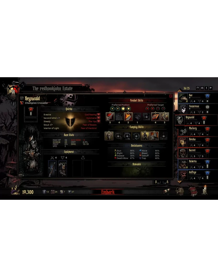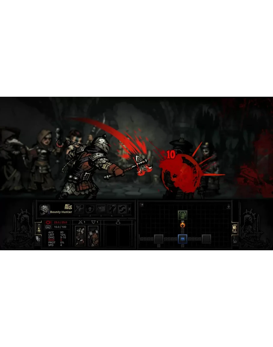 Darkest Dungeon — сложная пошаговая ролевая roguelike-игра с готической атмосферой, в которой приключения персонажей сказываются на их душевном здоровье. Вам предстоит собрать, обучить и возглавить команду героев, у каждого из которых есть свои недостатки. Команду нужно будет провести по жутким лесам, опустевшим заповедникам, обрушенным склепам и другим опасным местам. Сражаться придётся не только с немыслимыми врагами, но и со стрессом, голодом, болезнями и непроглядной тьмой. Раскрывайте странные тайны и отправляйте героев в бой со страшными монстрами при помощи новой стратегической пошаговой системы боя. 3 режима игры и более 80 часов геймплея Поддержка пользовательских модификаций в Steam Workshop Система психозов — сражаться предстоит не только с монстрами, но и со стрессом! Герои подвержены паранойе, мазохизму, нелогичному поведению и многим другим состояниям, влияющим на игру. Стильная графика, будто нарисованная пером от руки. Новая пошаговая система боя столкнёт героев с многочисленными порождениями зла. 16 (и будут новые!) игровых классов: чумной доктор, дикарка и даже прокажённый. Лагерь, где можно залечить раны или выступить с воодушевляющей речью. Город с трактиром и монастырём, где измученные герои могут отдохнуть и снять накопившийся стресс. Классические черты компьютерных RPG: необратимая смерть героев, опасные подземелья и возможность проходить игру несколько раз. Сумеете ли вы дать отпор потусторонним ужасам, захватившим ваше родовое поместье? Действуйте на свой страх и риск! Награды и номинации IGF 2016 — 3 номинации Rock Paper Shotgun — 50 лучших RPG всех времён PAX 10 в 2015 Номинация на SXSW Gamer's Choice в 2015 MMORPG — лучшая инди-RPG (Pax East 2014), номинация на лучшую RPG на PAX Prime 2014 Выбор Indie Megabooth на PAX East 2014 и PAX Prime 2015 Copyright 2015-2021 Red Hook Studios Inc. "Darkest Dungeon" is a registered trademark of Red Hook Studios Inc. All rights reserved.
