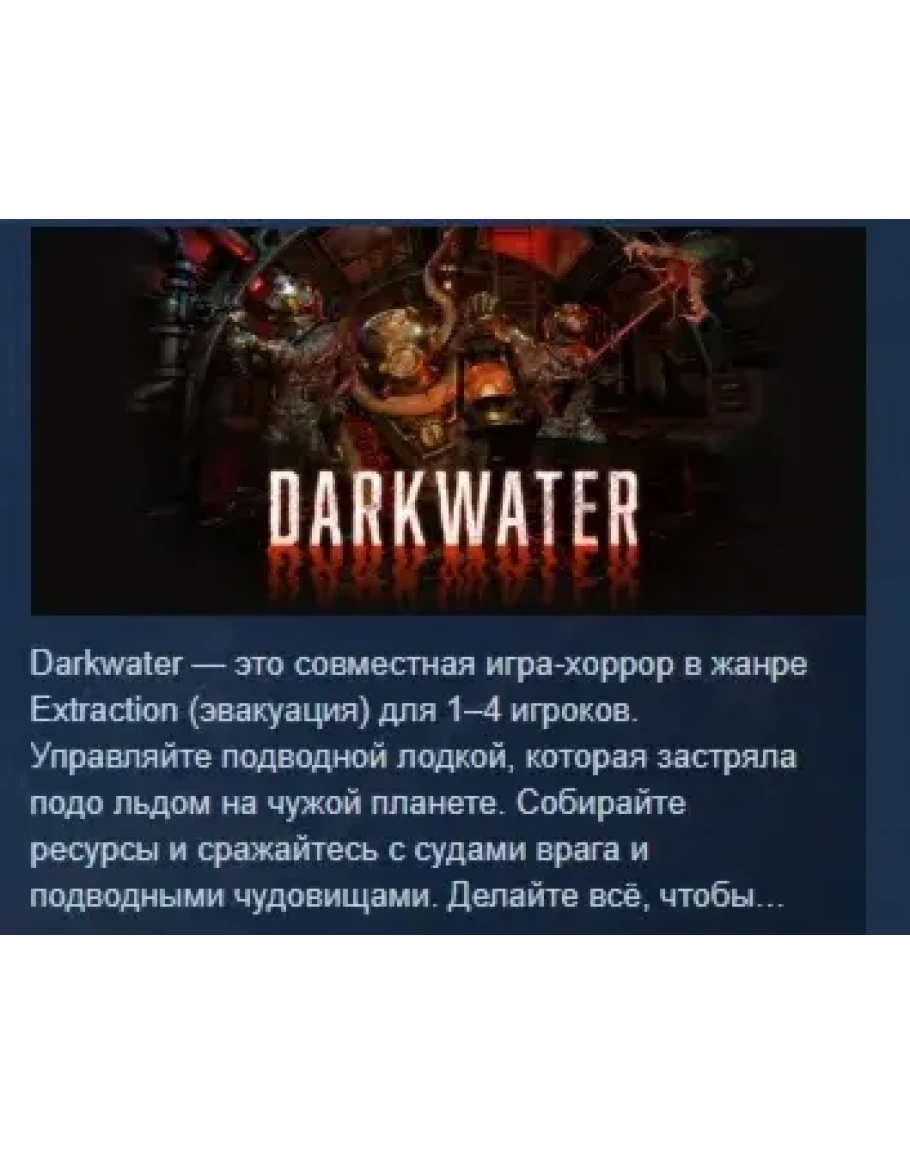 Darkwater — это совместная игра-хоррор в жанре Extraction (эвакуация) для 1–4 игроков. Управляйте подводной лодкой, адаптируйте ее под себя и выживайте в ледяных глубинах чужой планеты.