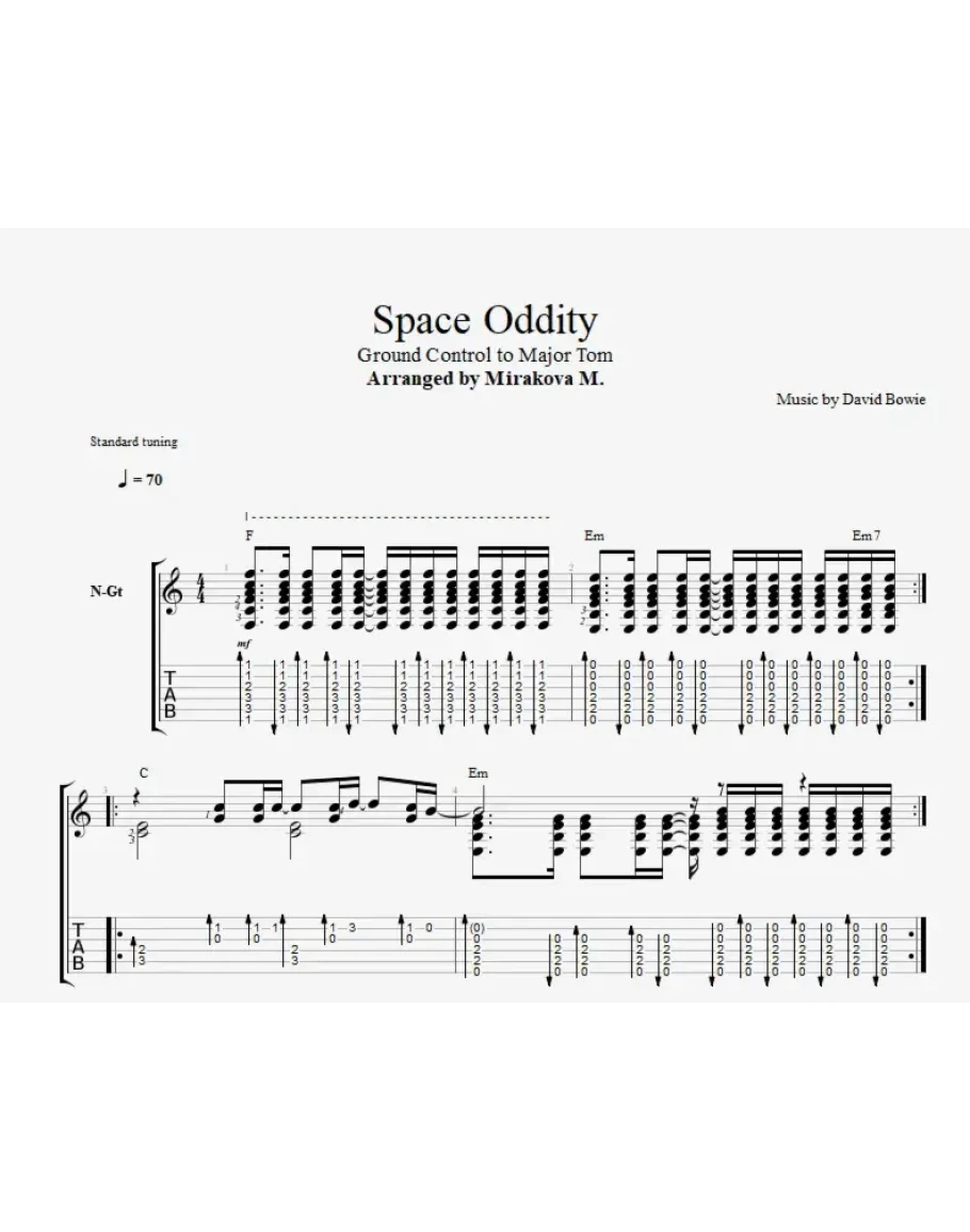 Аранжировка для шестиструнной гитары от Марины Мираковой на песню Дэвида Боуи - Space Oddity