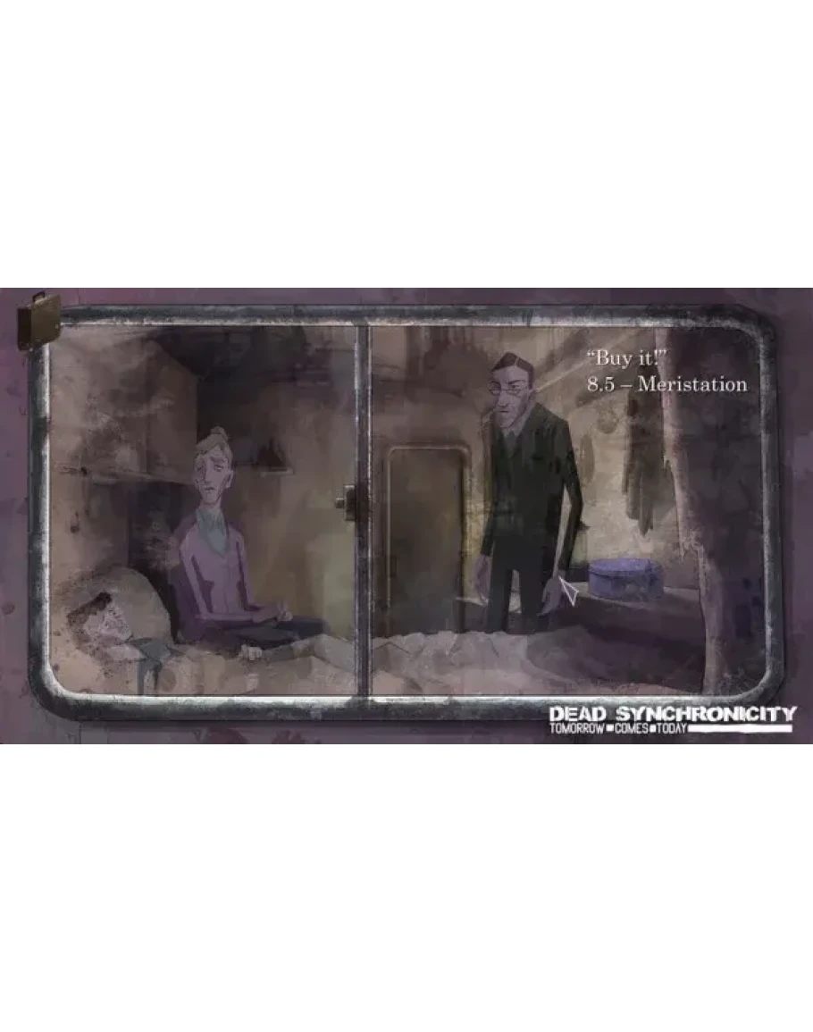 Dead Synchronicity: Tomorrow comes Today — это двухмерное «point-and-click» приключение, повествующее об антиутопии. Игра отдает должное классическим приключенческим играм (The Secret of Monkey Island, Broken Sword, Day of the Tentacle…), но рассказывает более взрослую историю, которая заставит вас вспомнить игры «I have no mouth and I must scream» или «Sanitarium».