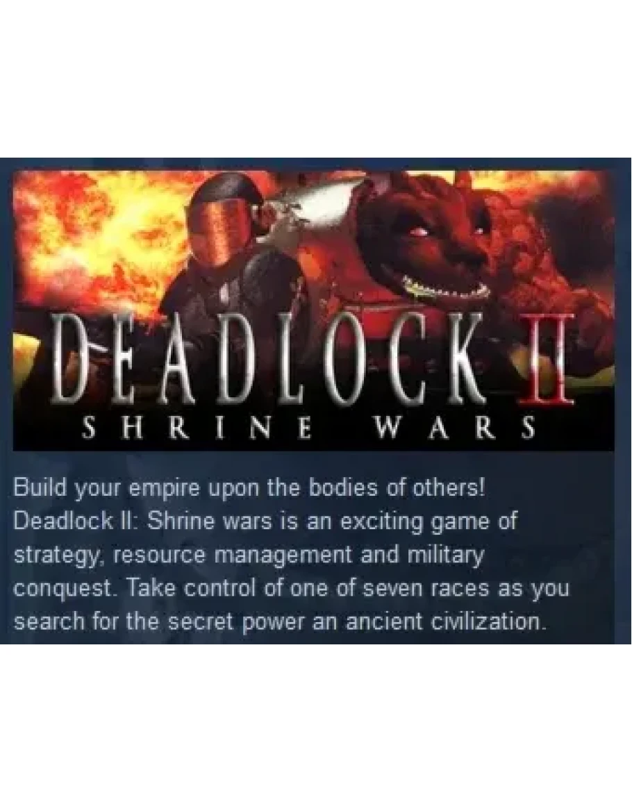 Deadlock II: Shrine wars is an exciting game of strategy, resource management and military conquest. Take control of one of seven races as you search for the secret power an ancient civilization.