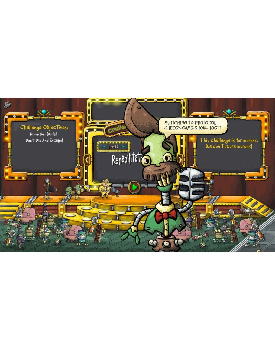 Death by Game Show - добро пожаловать в мир агрессивных дроидов, где вам и предстоит обосноваться! На дворе стоит 26 век. Технологии поистине достигли своего апогея, однако лучше от этого не стало, ведь новоиспеченные дроиды развернули настоящую войну против людей. Приготовьтесь стать частью этого грандиозного противостояния и постарайтесь сохранить свой вид! Насладитесь грандиозным стратегическим простором и яркой двухмерной графикой, погрузитесь с головой в задорную научно-фантастическую историю и не забудьте попробовать свои силы в создании персональных модификации. Война человека и машины продолжается!