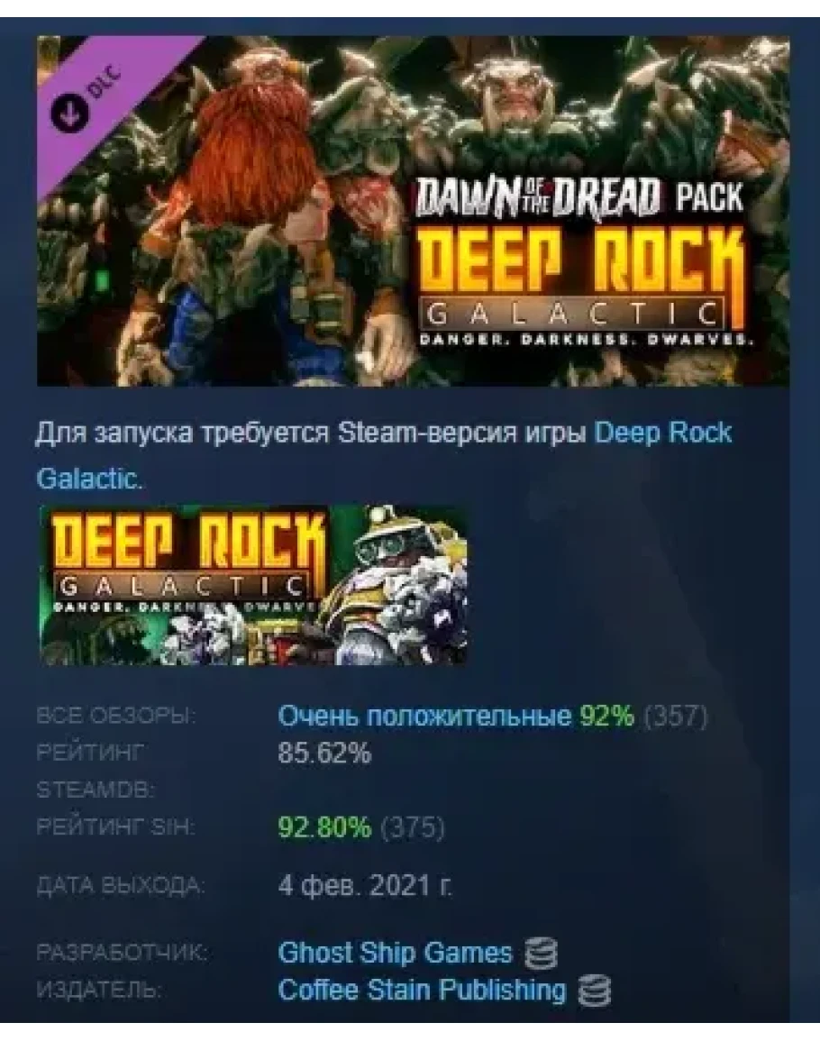 DLC ДОПОЛНЕНИЕ К ИГРЕ Внимание! Для запуска требуется Steam-версия игры Deep Rock Galactic