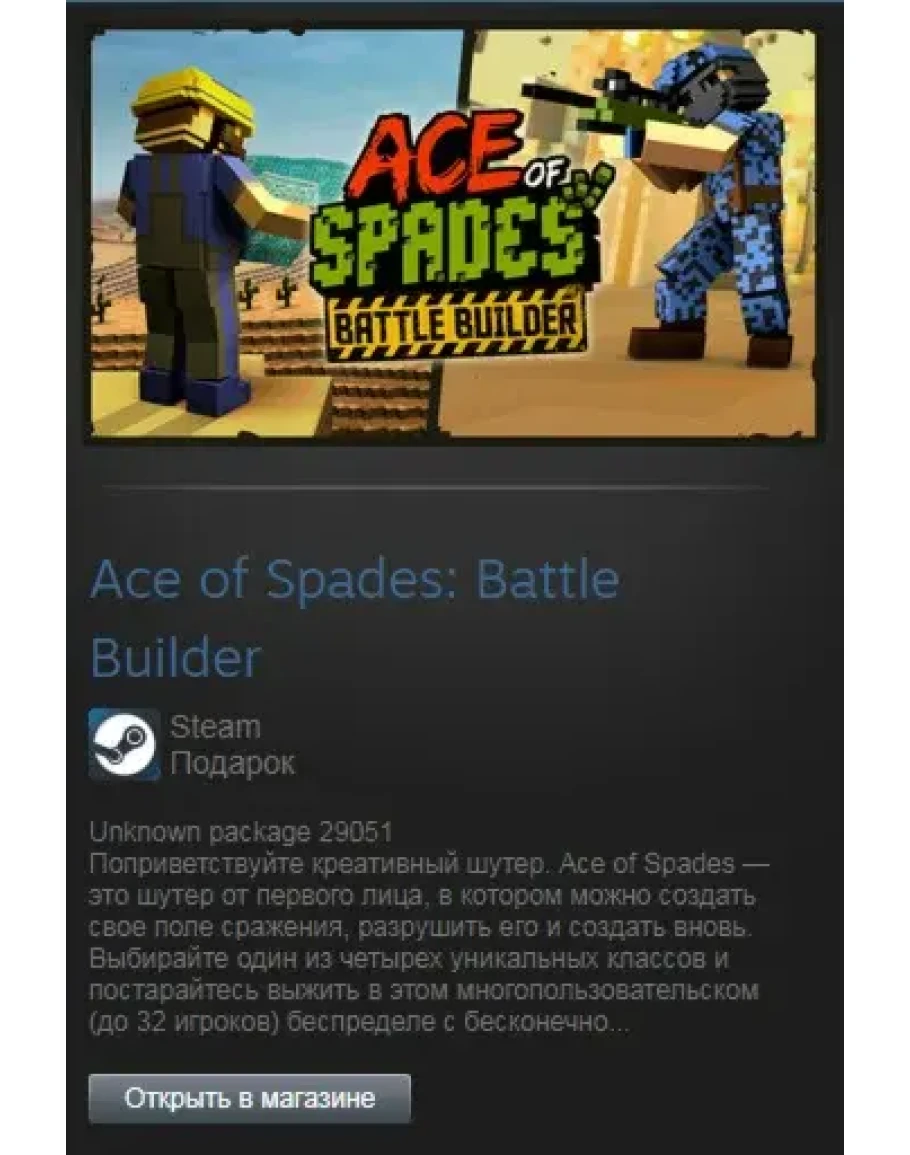 Поприветствуйте креативный шутер. Ace of Spades — это шутер от первого лица, в котором можно создать свое поле сражения, разрушить его и создать вновь. Выбирайте один из четырех уникальных классов и постарайтесь выжить в этом многопользовательском (до 32 игроков) беспределе с бесконечно развертывающимися боями, постройками, разрушениями и захватами территорий. Это как война, только лучше.