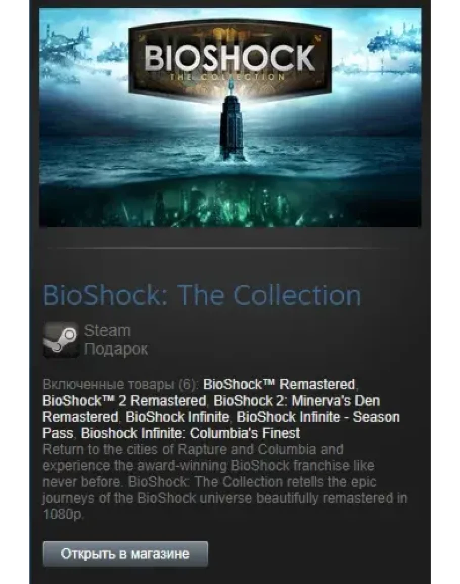 Return to the cities of Rapture and Columbia and experience the award-winning BioShock franchise like never before, beautifully remastered in 1080p. BioShock: The Collection contains all single-player content from BioShock, BioShock 2, and BioShock Infinite, all single-player add-on content, the “Columbia’s Finest” pack, and Director’s Commentary: Imagining BioShock, featuring Ken Levine and Shawn Robertson.