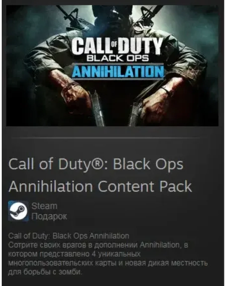 Сотрите своих врагов в Annihilation, новейшем дополнении для Call Of Duty: Black Ops с 4-я уникальными многопользовательскими картами и новой дикой местностью для безжалостного зомби-экшена.