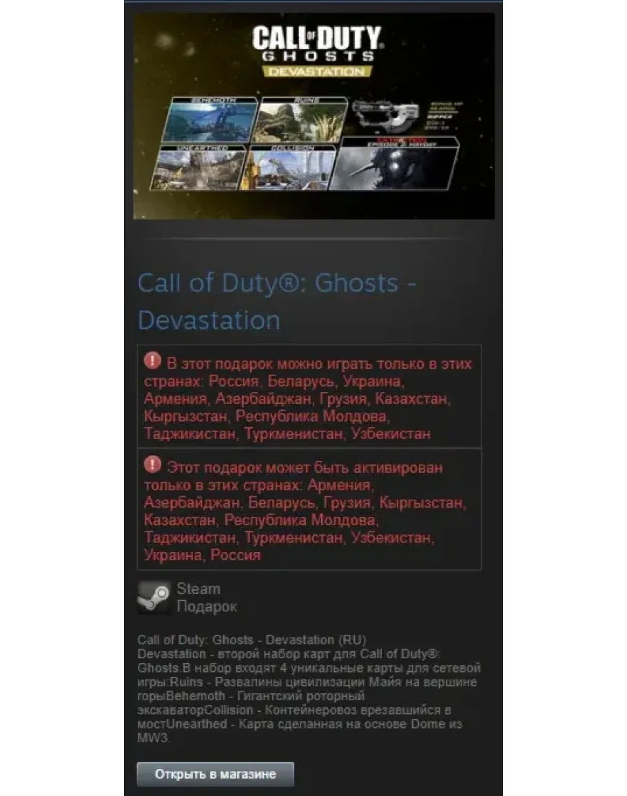 Devastation - второй набор карт для Call of Duty®: Ghosts.