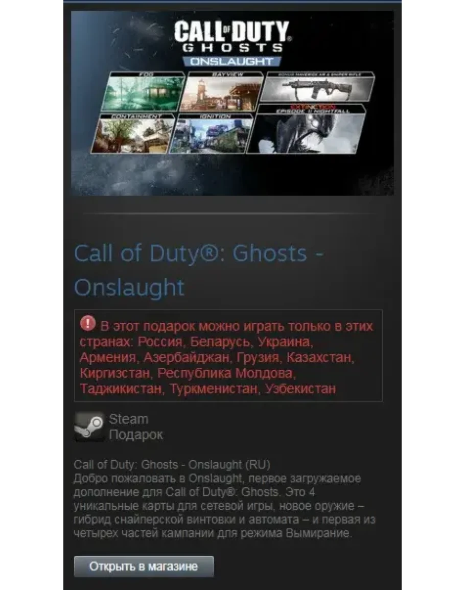 Для запуска требуется Steam-версия игры Call of Duty®: Ghosts.