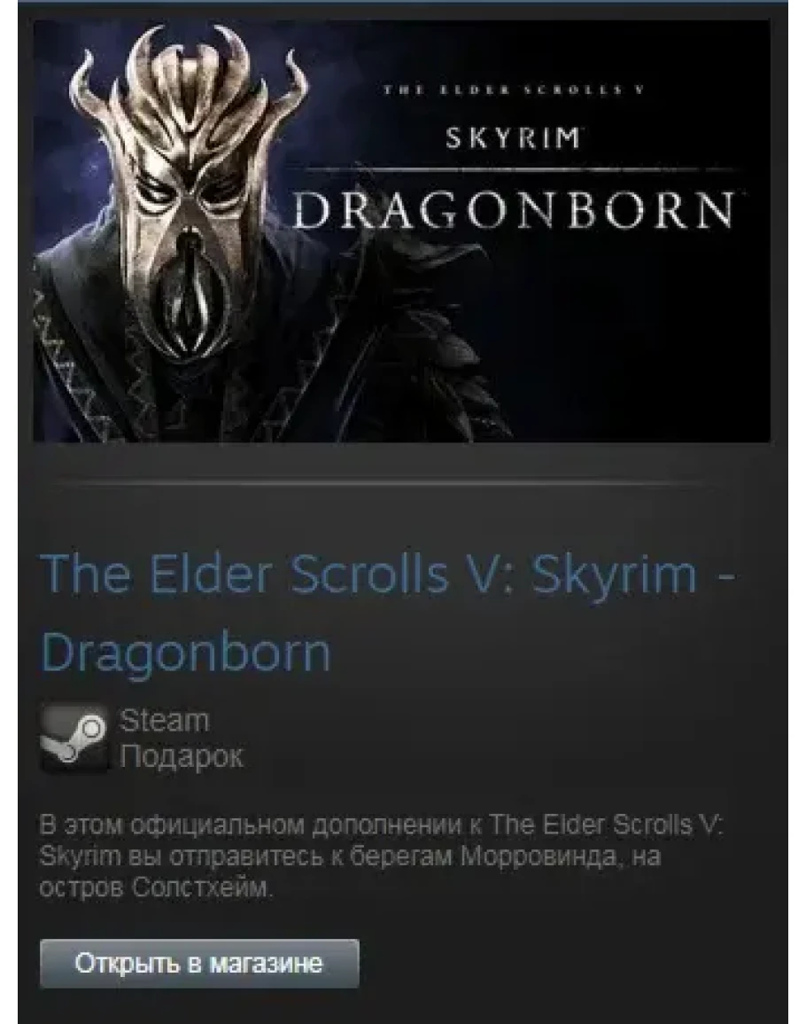 With this official add-on for The Elder Scrolls V: Skyrim, journey off the coast of Morrowind, to the island of Solstheim. Encounter new towns, dungeons, and quests, as you traverse the ash wastes and glacial valleys of this new land. Become more powerful with shouts that bend the will of your enemies and even tame dragons. Your fate, and the fate of Solstheim, hangs in the balance as you face off against your deadliest adversary – the first Dragonborn.