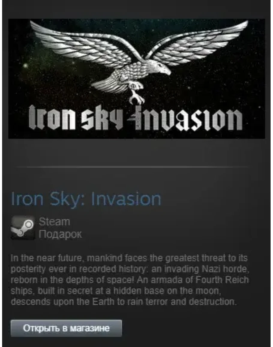 Iron Sky: Invasion - является космическим симулятором, который сочетает в себе пучшие традиции из истории видеоигр подобного жанра. Игра несет в себе элементы стратегии и RPG создающие захватывающий сценарий, втягивающий игрока в в войну между Луной и Землей, между добром и злом или попросту говоря между нами и фашистами! В основе игры лежит классический воздушный бой между игроками, корабль против корабля, то как это мир видел во времена Красного барона! Как и у предка всех летчиков-истребителей, так и на просторах необъятной вселенной, в дополнение к рыцарским сражениям между пилотами героями, вам придется сразиться с огромными боевыми короблями класса дирижабль!
