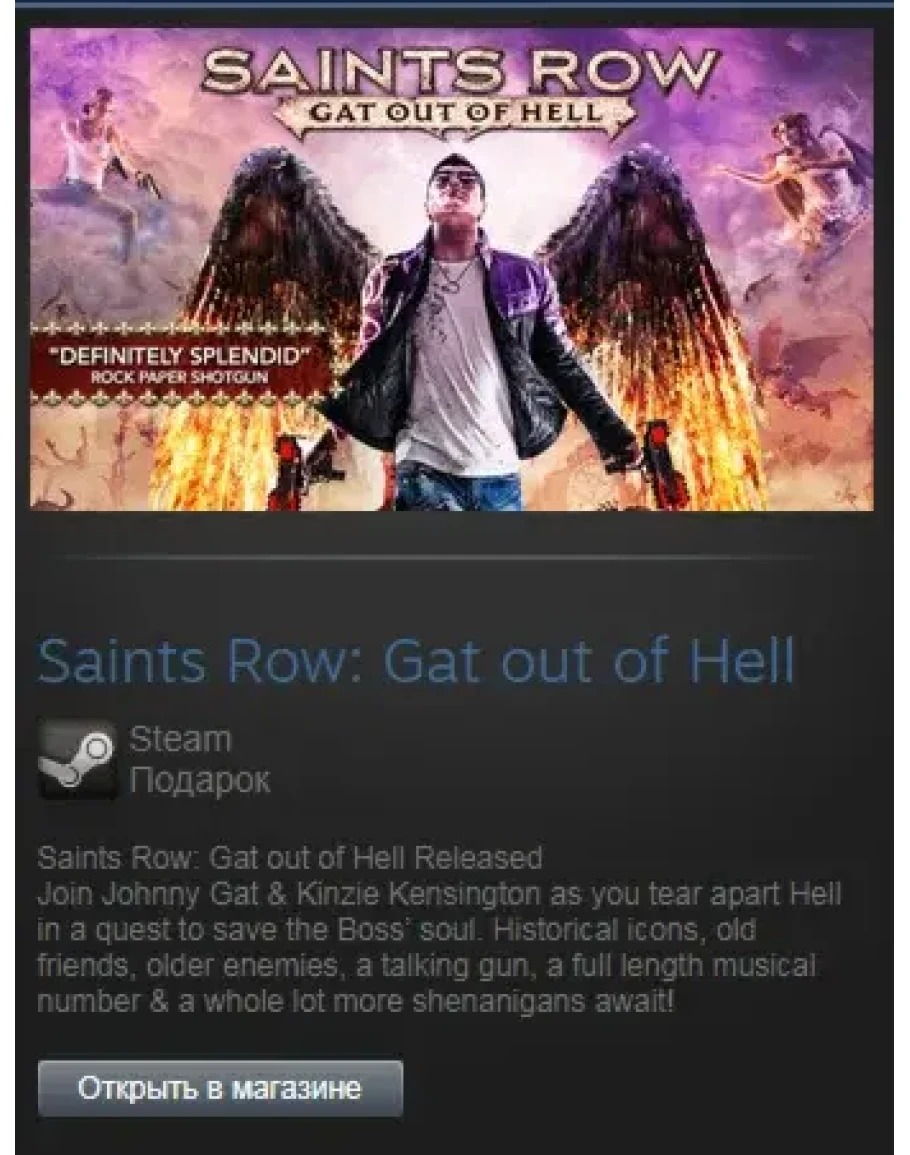 After the space faring antics of Saints Row IV, many fans asked what we could do next… the answer? Shoot The Devil in the face. Play as either Johnny Gat or Kinzie Kensington as you tear apart Hell in a quest to save the leader of the Saints’ soul. Historical icons, old friends, older enemies, a talking gun, a full length musical number, and a whole lot of other shenanigans all await you in the open world standalone expansion playground that is Saints Row: Gat Out Of Hell.