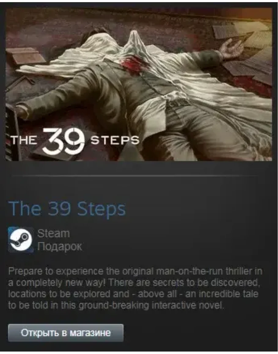 Prepare to experience the original man-on-the-run thriller in a completely new way. This is a digital adaptation of John Buchan's incredible book (inspiration to Ian Fleming's James Bond!). Be transported back to 1914 London, where Richard Hannay finds himself framed for a murder he didn't commit. Now he must escape the Capital and stay alive long enough to solve the riddle of The Thirty-Nine Steps.