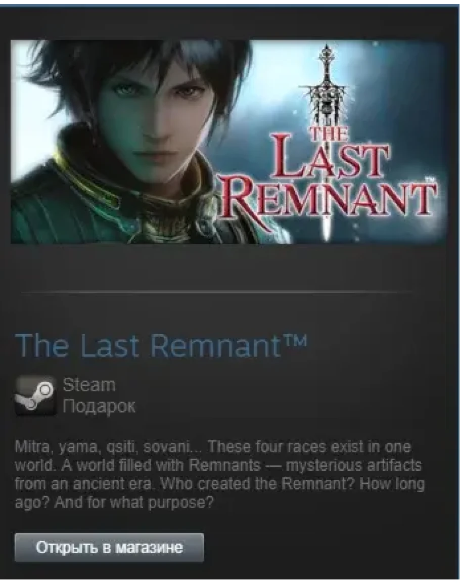 The Last Remnant - ролевая игра, в которой вас ждет принципиально новая боевая система, благодаря которой вы сможете принять участие в крупномасштабных сражениях. Предыстория событий такова: тысячу лет назад люди вошли в контакт с Remnants - магическими представители давно ушедшей эры, которые постоянно поддерживали баланс в мире. Вскоре после того, как наметился разлом между правителями и подчиненными этого мира, Remnants прекратили выполнять свою задачу. На тех землях, где раньше царил мир, потекли кровавые реки. Спустя тысячу лет после этого и начинается ваше приключение…