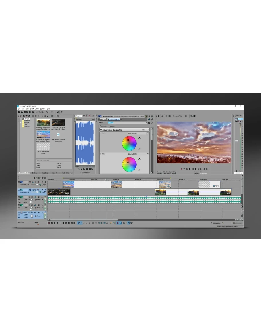 The Vegas Pro 14 Edit interface provides an impressive array of innovative tools and thoughtful touches with a fully customizable workspace for accomplishing a wide range of production tasks. Edit an exhilarating gameplay video or drone footage fast, add amazing audio and video effects, then upload it directly to your channel to share experiences with your subscribers.