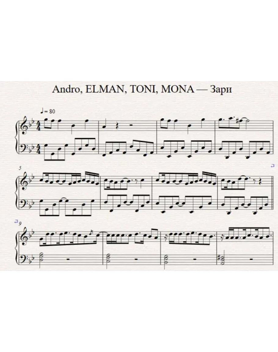 Andro, ELMAN, TONI, MONA Зари (ноты для фортепиано)