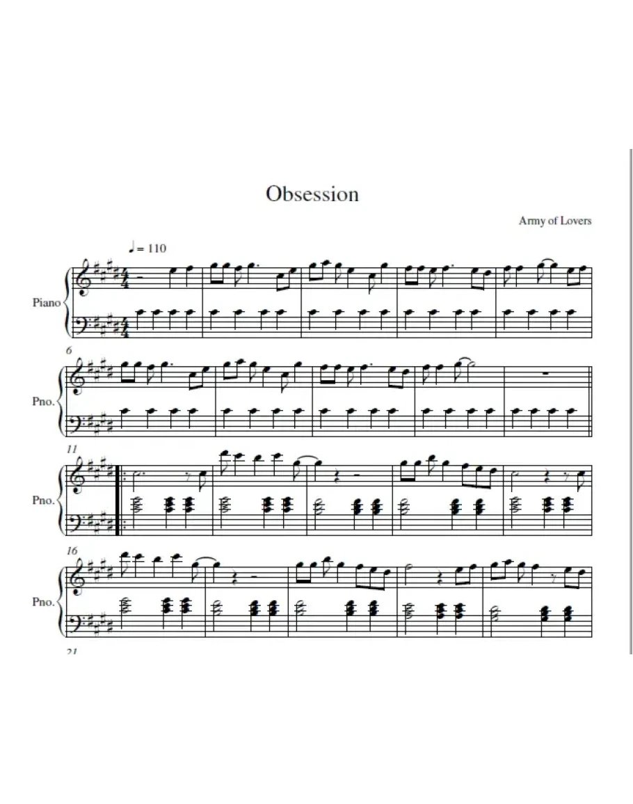 Army Of Lovers - Obsession (ноты для фортепиано)