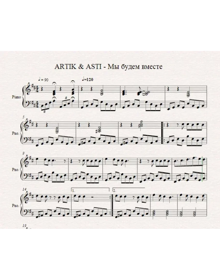 ARTIK & ASTI - Мы будем вместе (ноты для фортепиано)