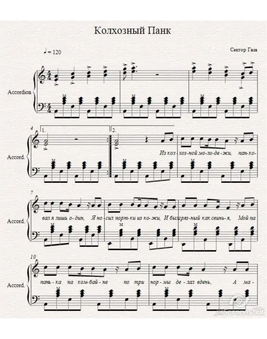 Колхозный панк-Сектор Газа-ноты для аккореона/баяна