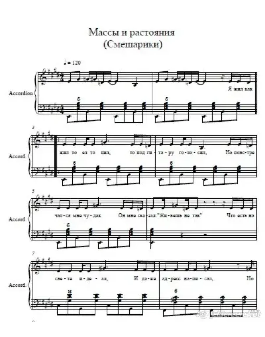Массы и растояния (м/ф Смешарики) ноты для аккордеона