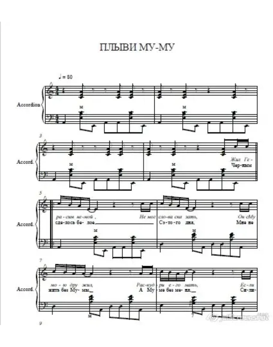 Плыви Му-му (ноты для баяна) отжиг на баяне