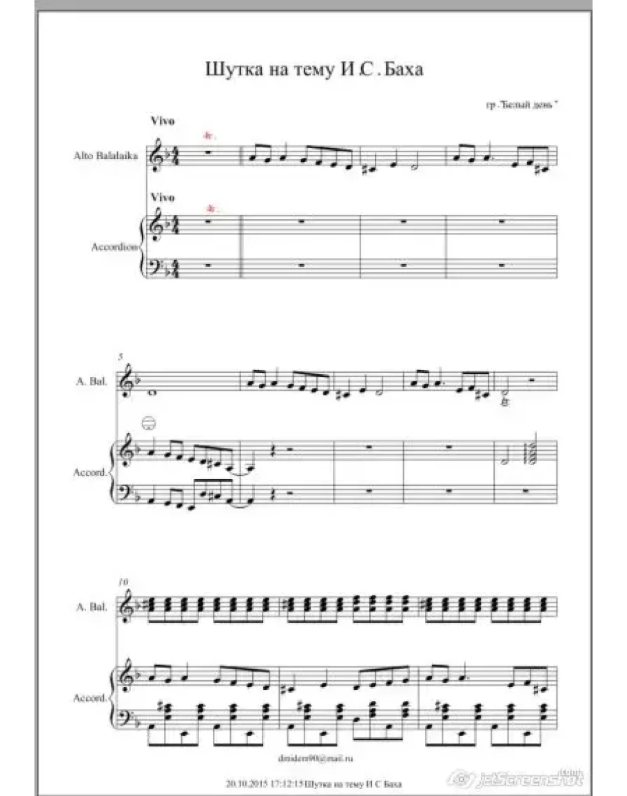 Ноты для аккордеона (баяна) и балалайки из репертуара группы "Белый День"