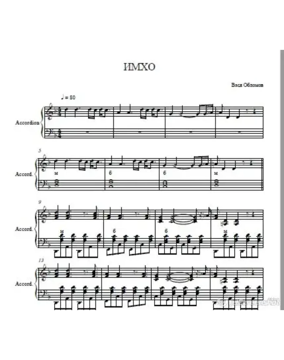 Вася Обломов -ИМХО (ноты для баяна ,аккордеона,фоно)