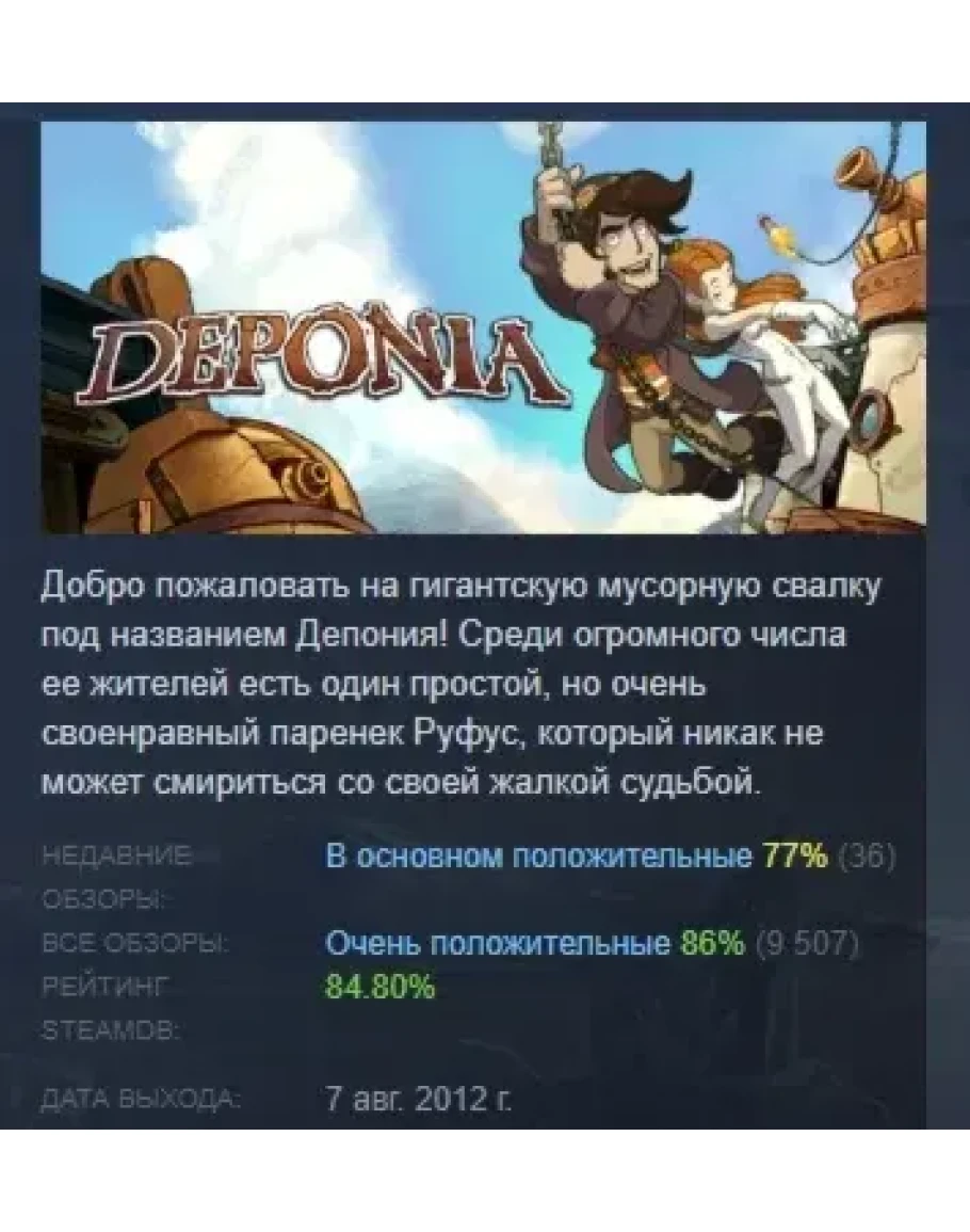 Deponia АВТОДОСТАВКА STEAM GIFT РОССИЯ