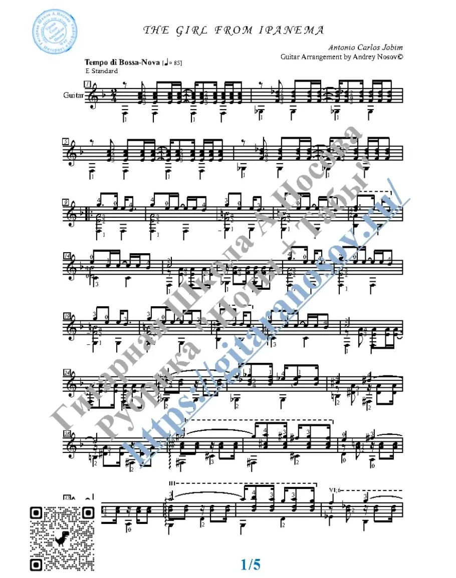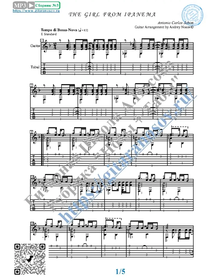 Кликните "Подробнее" для получения дополнительной информацииВашему вниманию предлагается композиция "The Girl From Ipanema (A.Jobim)", предназначенная для исполнения на 6-ти струнной гитаре СОЛО. Запись выполнена нотами, сопровождена подробнейшей аппликатурой и продублирована табулатурой. И ещё…