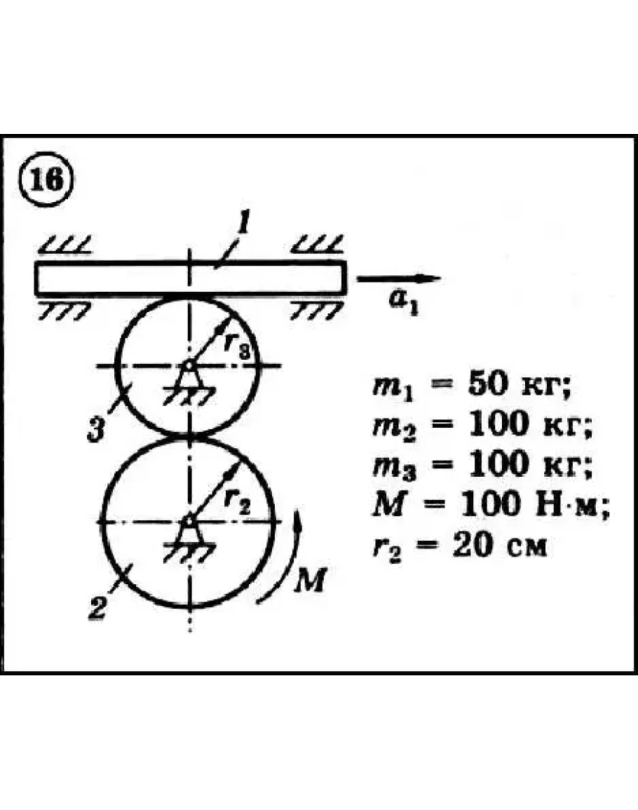 Для приведенной на схеме механической системы, используя уравнения Лагранжа второго рода, определить указанное на схеме угловое ускорение или линейное ускорение. Нити невесомы и нерастяжимы. Принятые обозначения: m - массы тел, R и r - радиусы, ρ - радиус инерции (если он не указан, тело считать однородным цилиндром); при наличии трения указываются: f - коэффициент трения скольжения, fk - коэффициент трения качения.
