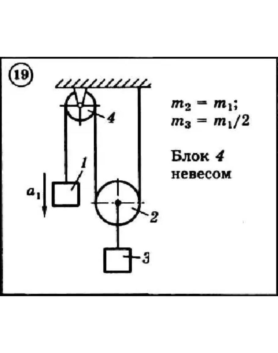 Для приведенной на схеме механической системы, используя уравнения Лагранжа второго рода, определить указанное на схеме угловое ускорение или линейное ускорение. Нити невесомы и нерастяжимы. Принятые обозначения: m - массы тел, R и r - радиусы, ρ - радиус инерции (если он не указан, тело считать однородным цилиндром); при наличии трения указываются: f - коэффициент трения скольжения, fk - коэффициент трения качения.