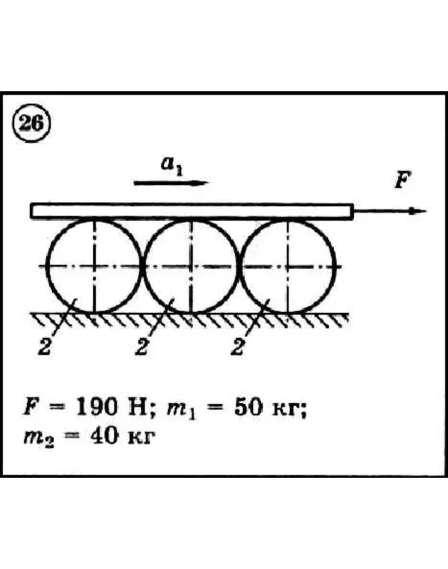 Для приведенной на схеме механической системы, используя уравнения Лагранжа второго рода, определить указанное на схеме угловое ускорение или линейное ускорение. Нити невесомы и нерастяжимы. Принятые обозначения: m - массы тел, R и r - радиусы, ρ - радиус инерции (если он не указан, тело считать однородным цилиндром); при наличии трения указываются: f - коэффициент трения скольжения, fk - коэффициент трения качения.
