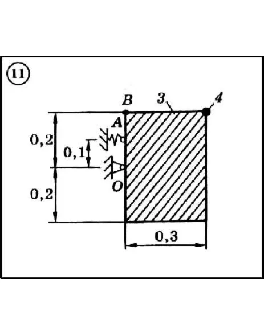 Механическая система снабжается невесомым вязким демпфером, который устанавливается в точке B параллельно оси упругого элемента, и создает силу сопротивления, пропорциональную скорости точки B: R = -bvB, где b = 20 Нс/м - коэффициент сопротивления. Кроме того, на систему начинает действовать вынуждающая сила F = F0 sin pt, где F0 = 60 Н, p = 25 c-1 - амплитуда и частота вынуждающей силы. Вынуждающая сила приложена в точке B и действует параллельно оси упругого элемента. (Если точка B совпадает с точкой А, на схеме указывается B = A). Требуется определить амплитуду чисто вынужденных колебаний системы.
