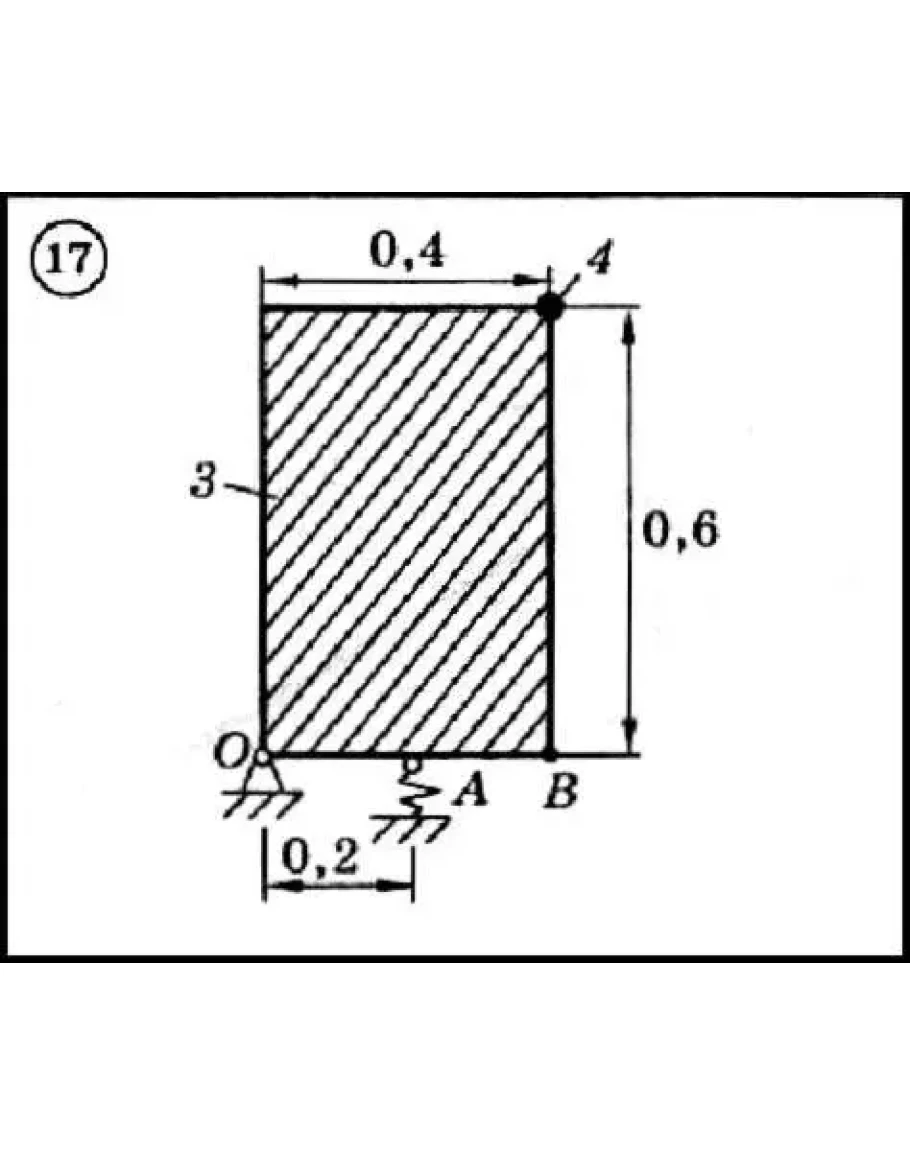 Механическая система снабжается невесомым вязким демпфером, который устанавливается в точке B параллельно оси упругого элемента, и создает силу сопротивления, пропорциональную скорости точки B: R = -bvB, где b = 20 Нс/м - коэффициент сопротивления. Кроме того, на систему начинает действовать вынуждающая сила F = F0 sin pt, где F0 = 60 Н, p = 25 c-1 - амплитуда и частота вынуждающей силы. Вынуждающая сила приложена в точке B и действует параллельно оси упругого элемента. (Если точка B совпадает с точкой А, на схеме указывается B = A). Требуется определить амплитуду чисто вынужденных колебаний системы.